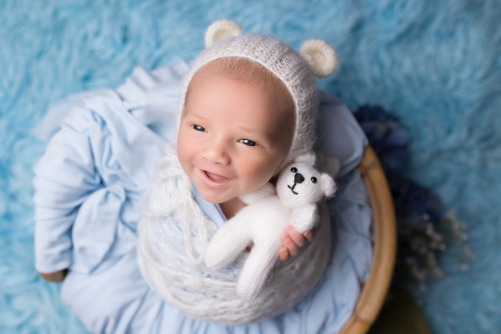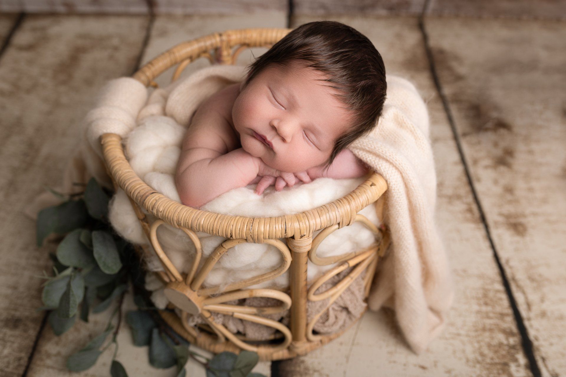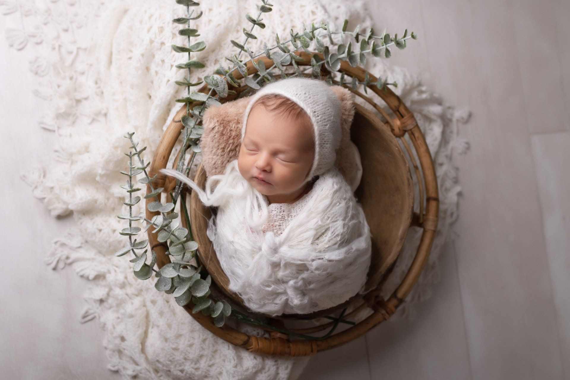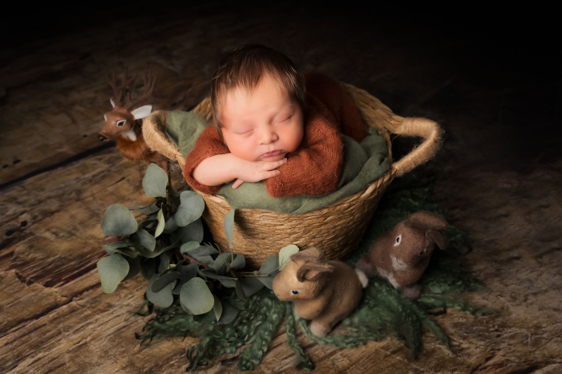 - Prises de vues de bébé seul en posing + 2 mises en scène en contenants, ainsi que quelques photos de fratrie ainsi qu'en famille