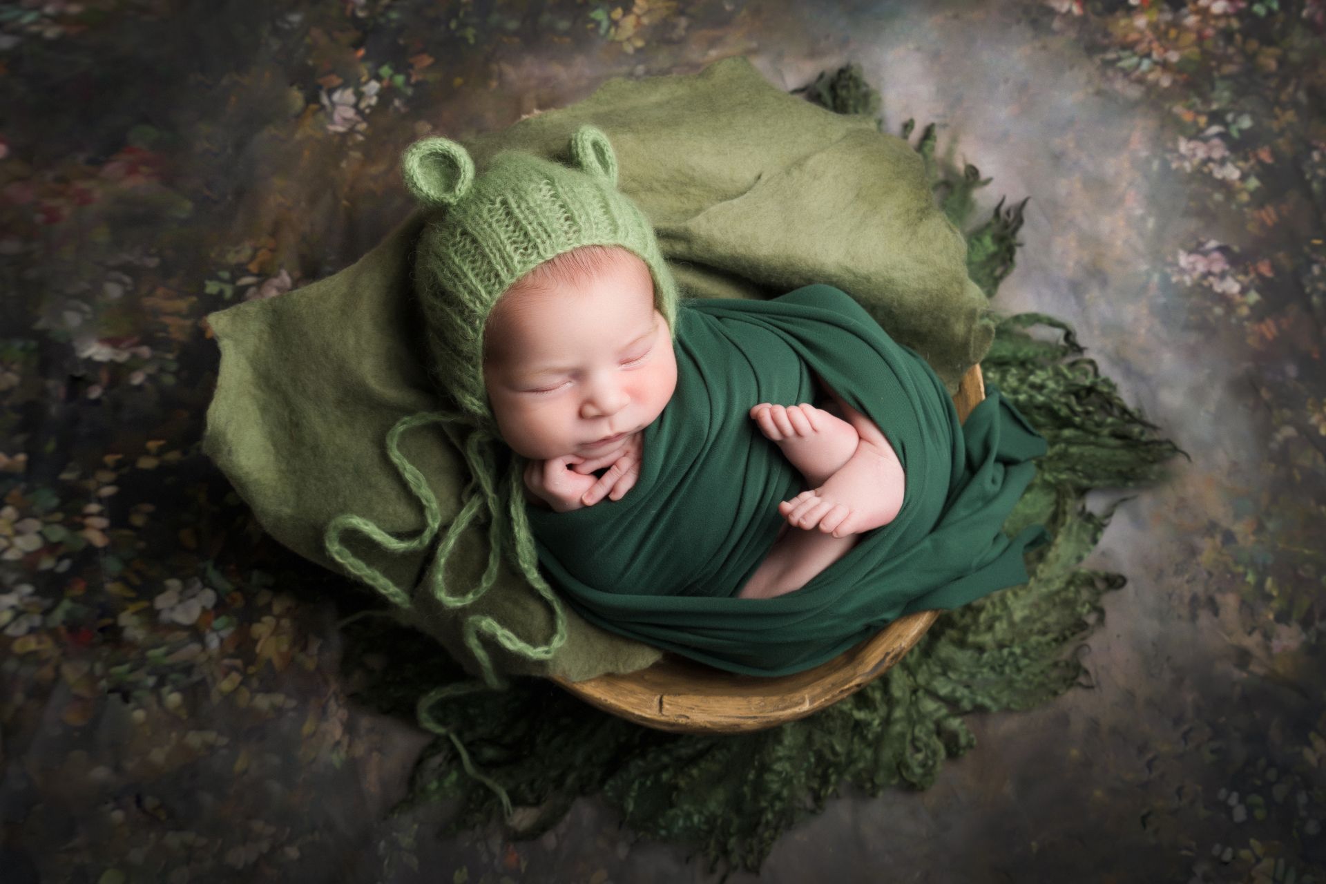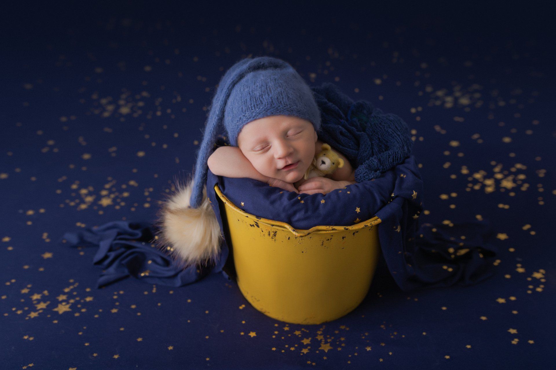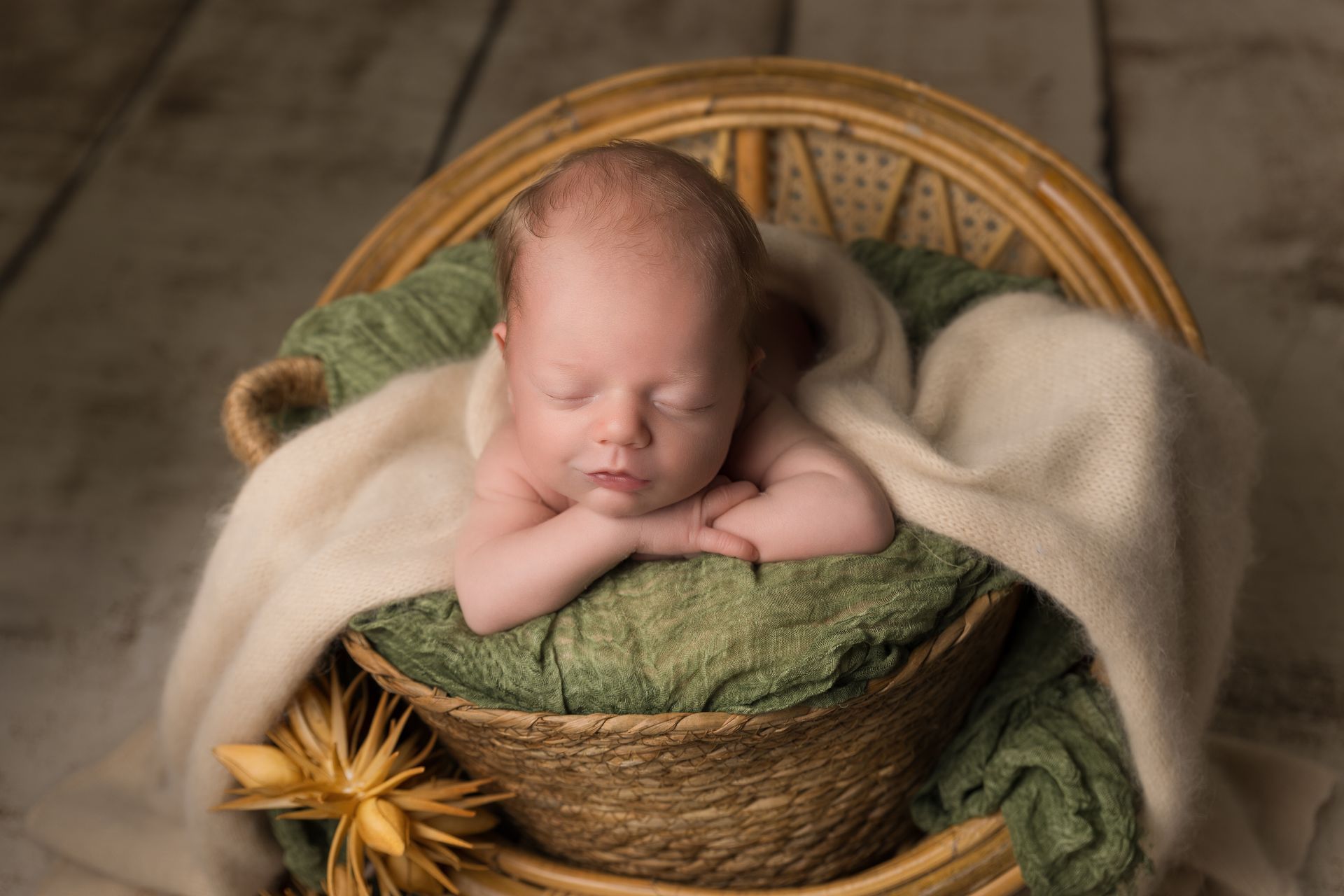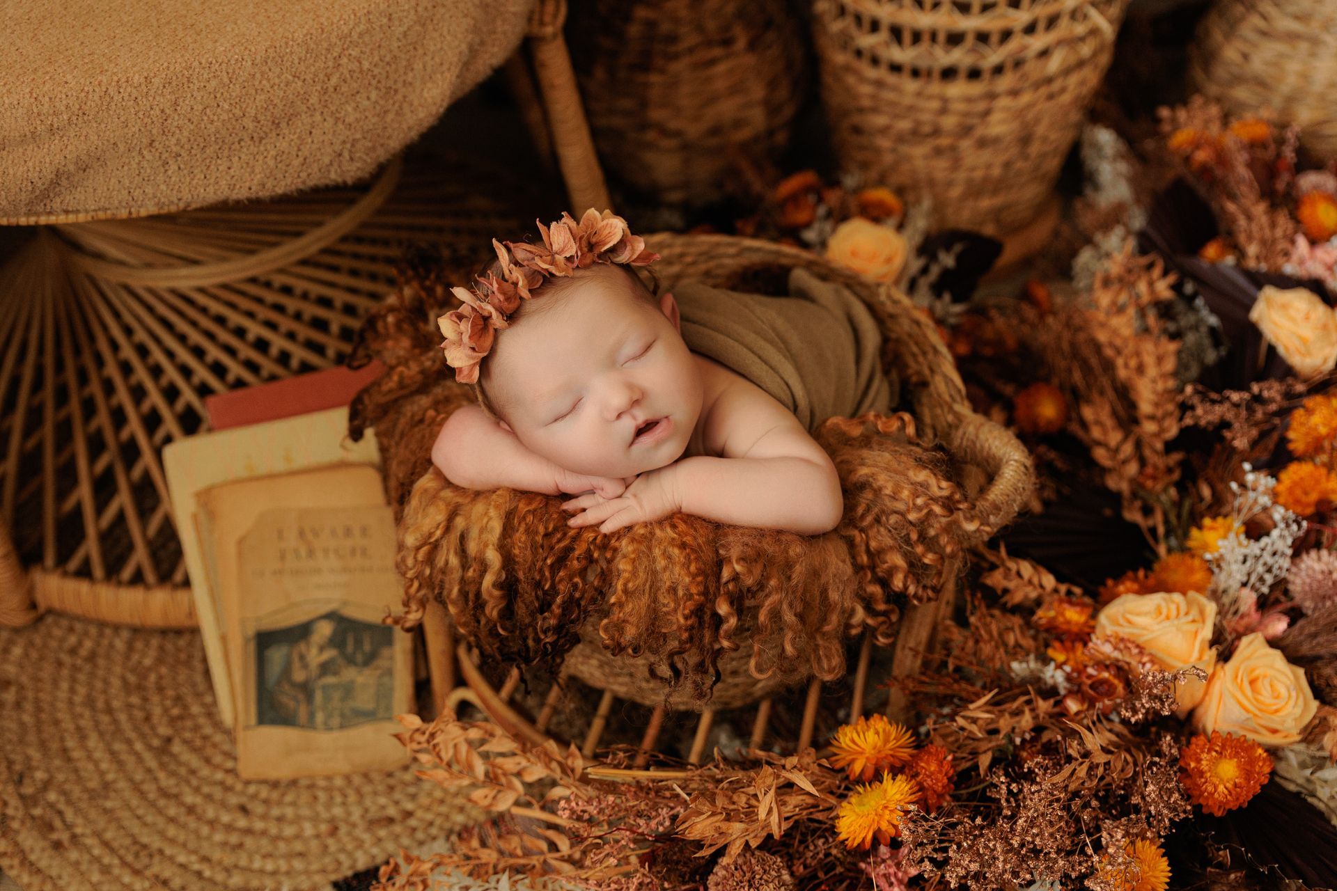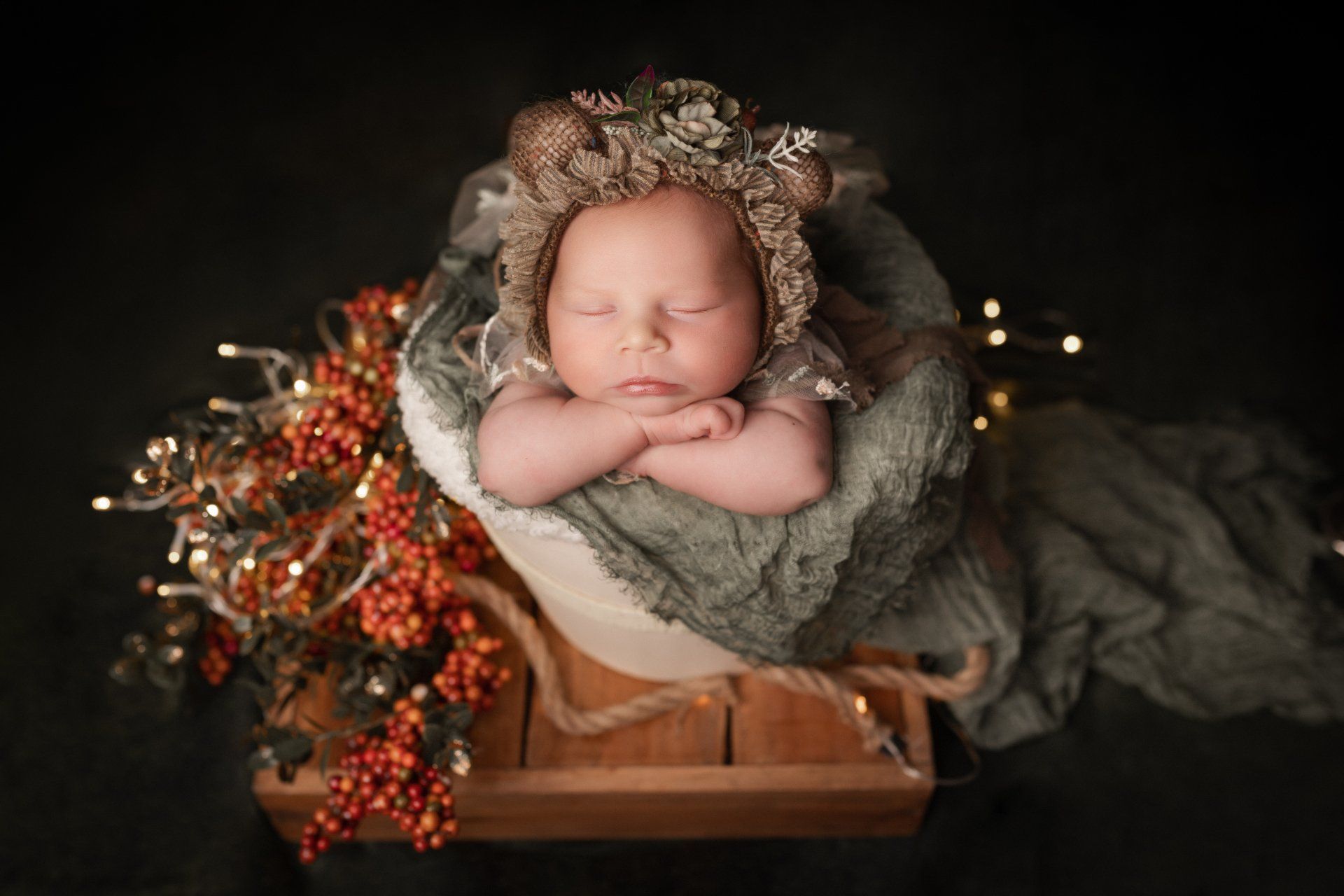 - Prises de vues de bébé seul en posing + 2 mises en scène en contenants, ainsi que quelques photos de fratrie ainsi qu'en famille