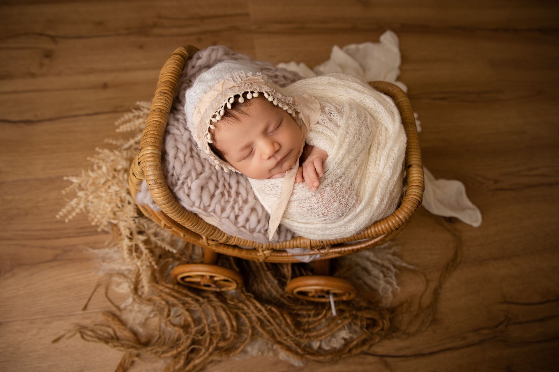 - Prises de vues de bébé dans 2 mises en scène ( uniquement emmailloté) + quelques photos de famille ( une seule ambiance, une seule tenue)